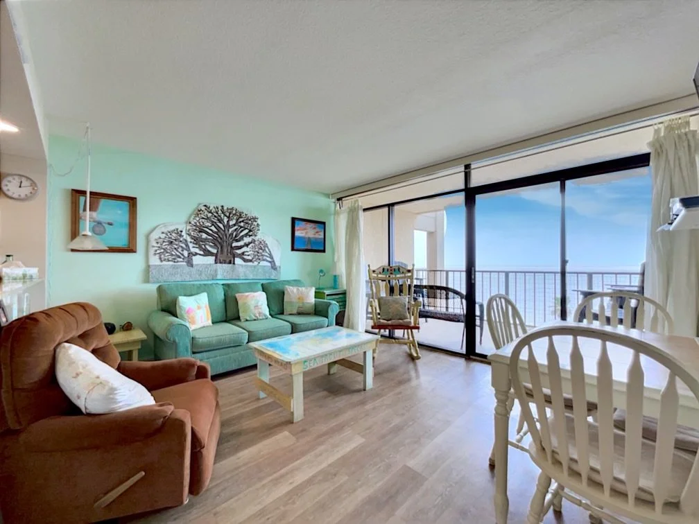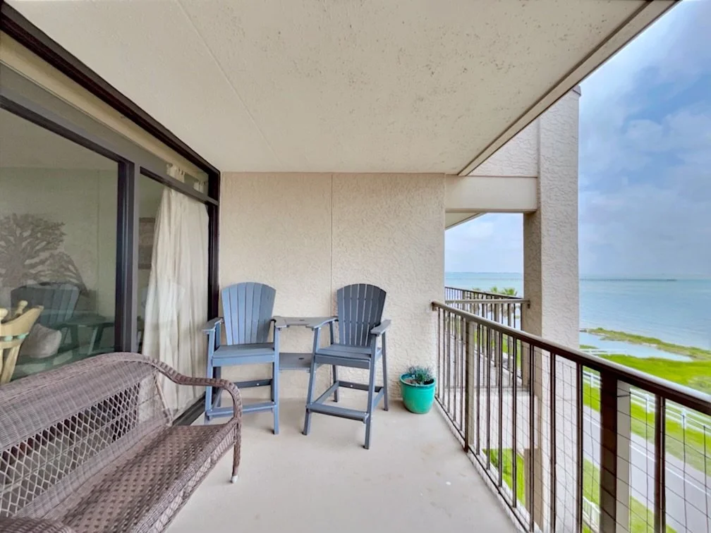 Whether you're planning a romantic getaway, a fishing trip, or a small family vacation, this Laguna Reef condo provides the ideal environment. The comfortable living room features relaxing seating with water views, perfect for unwinding after a day of coastal adventures. The private balcony offers the perfect spot to enjoy coffee at sunrise or cocktails at sunset while taking in the breathtaking bay views.