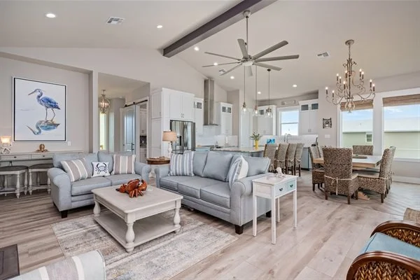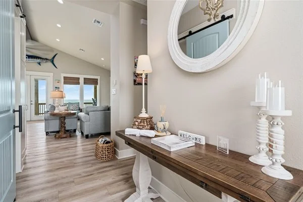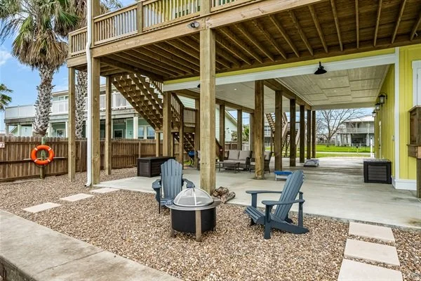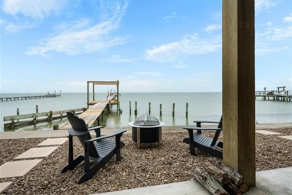 Rockapulco shines outdoors, with a private fishing pier, fire pit, and multiple spaces to relax. Sip coffee on the full-length deck, grill out with friends, or play cornhole in the lush yard. Every outdoor area is built for connection, fun, and enjoying the natural beauty of Copano Bay.